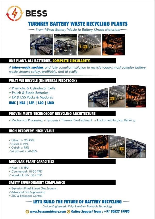 7000-8500 TONS/ YEAR LITHIUM-ION BATTERY RECYCLING PLANT